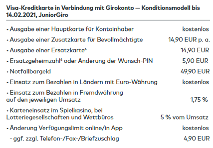 Das von dir verlinkte Preis-/Leistungsverzeichnis hatte ich zuvor auch gesehen, bin aber irritiert, da ich dort nicht meinen Fall vorfinde. Es steht auf Seite 3 folgendes für das Girokonto: