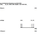 folgend die Aufstellung Brutobetrag: 31,2 $ -> 26,08 €Quellsteuer: 4,68