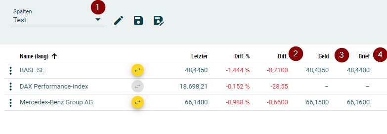 Ich gehe über Musterdepot – Startseite, ChartAnalyzer (neu) und anschließend über Spalten – Zitieren in eine von mir abgespeicherte Spalte