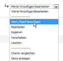 Was nicht geht: Aus der Detailansicht eines Wertes : Hinzufügen zum Musterdepot