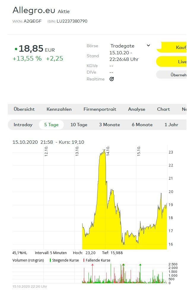 Noch was aus Handelsblatt: Europas größter Börsengang des Jahres: Starkes Debüt für Onlinehändler Allegro