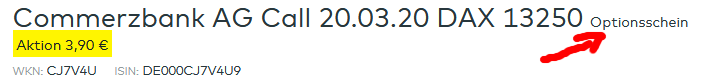 Jedenfalls sehe ich nur einen Standard-Optionsschein ohne KO-Schwelle. Die Commerzbank-Seite sieht es ähnlich. ![]()
