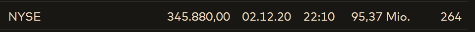 NYSE = Tages.-Vol. 95,37 Mio die 95,37 Mio müssen die bewegte Geldmenge sein da es nicht im ansatz soviele aktien des unternehmens gibt.