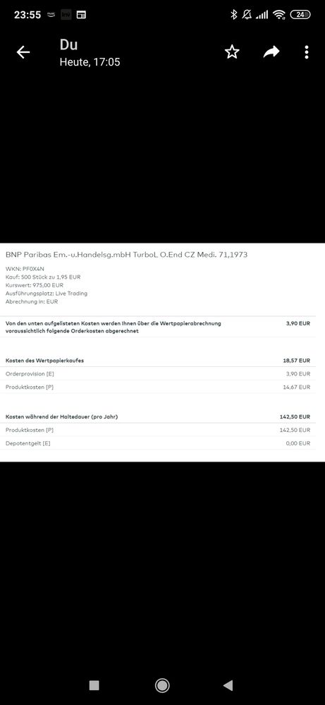 Wo ich bei BNP (und vielen anderen) 142€ (Jahr) zahle wären es bei Lang und Schwarz nur 20 € . Bei JP Morgan sogar nur 0,42€.