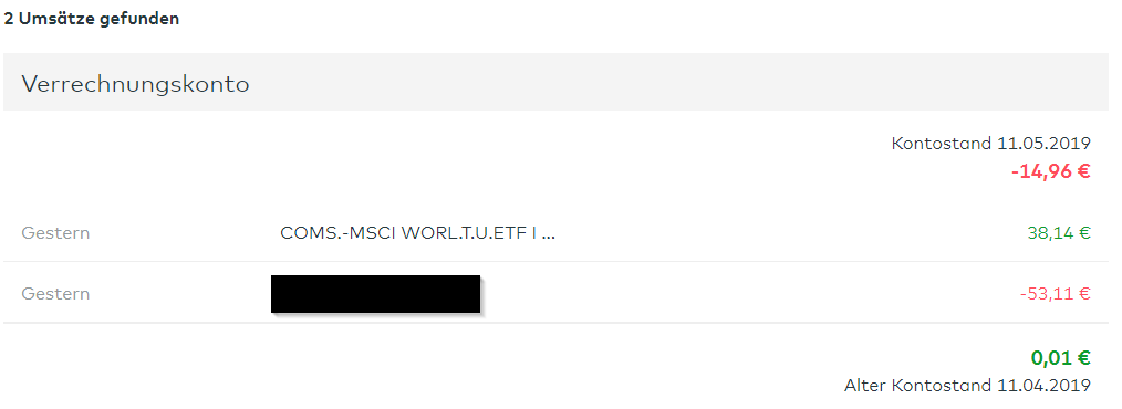 Ich habe normalerweise einen ETF Sparplan laufen, den ich allerdings für eine gewisse Zeit ausgesetzt habe. Allerdings ist noch einmal eine Order ausgeführt worden, welche ich aber nicht wollte. Also habe ich umgehend wieder verkaufet. Auf meinem Verrechnungskonto waren dann 53 Euro, die ich auf mein Girokonto überwiesen habe. Eine andere Order steht noch offen, d.h. noch nicht verkauft. Im Verrechnungskonto sind aber jetzt -14,96 Euro und ich habe keine Ahnung wo die herkommen.