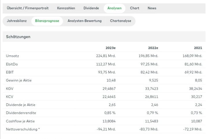 Der comdirect Informer bietet per Knopfdruck die Prognose der zukünftigen Kennzahlen:
