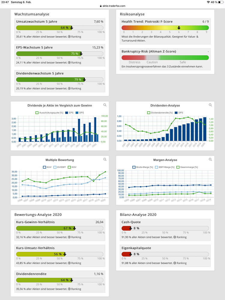 Hi @isi1969 , zur Bewertung des Unternehmens ist der Aktien Terminal nicht schlecht. Kostenlos und du hast alles auf einen Blick. Siehe die Bilder.